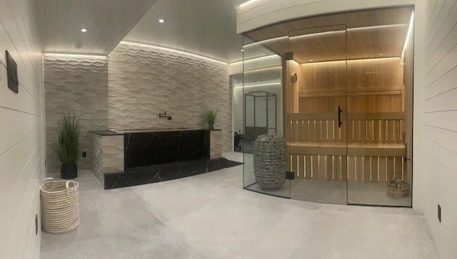 Here's an example of a custom wellness area we have built, including a sauna and cold plunge tub.