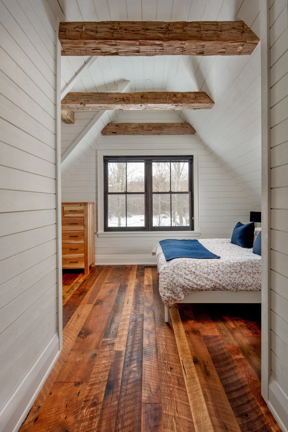 This custom home combines a cozy cottage look with rustic and industrial elements, mixed with a touch of modern style.