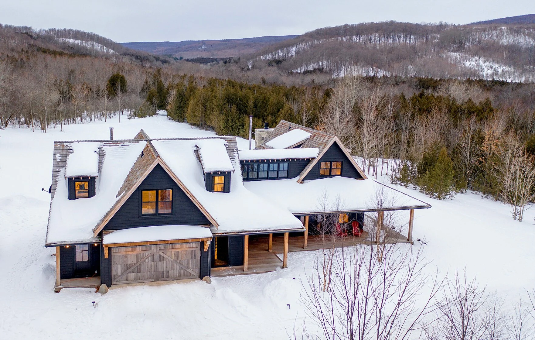 A luxurious take on the classic mountain cabin, this home is nestled within the beautiful rolling landscape surrounding the escarpment and makes excellent use of windows to soak in the natural light and the amazing view.